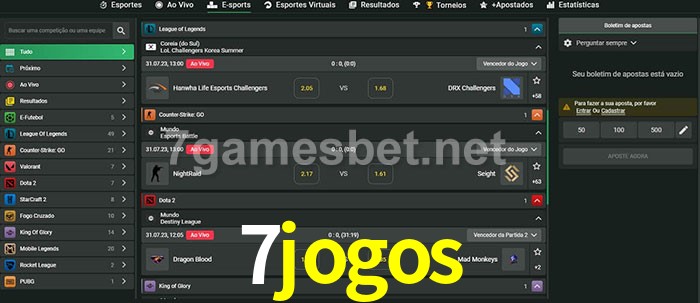 O 7jogos oferece uma grande seleção de opções de apostas em e-sports com probabilidades competitivas